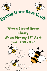 Spring is one of the busiest times for bees, as bumblebees and solitary bees emerge from their nests to find food. Honeybees also restock their food supplies, which they have been living off during the winter months, the queen bee will begin to lay eggs and new bee colonies are started. Let's celebrate this fascinating and important insects! Come to Stroud Green to learn fun facts about bees as you also create your own flying Bee.